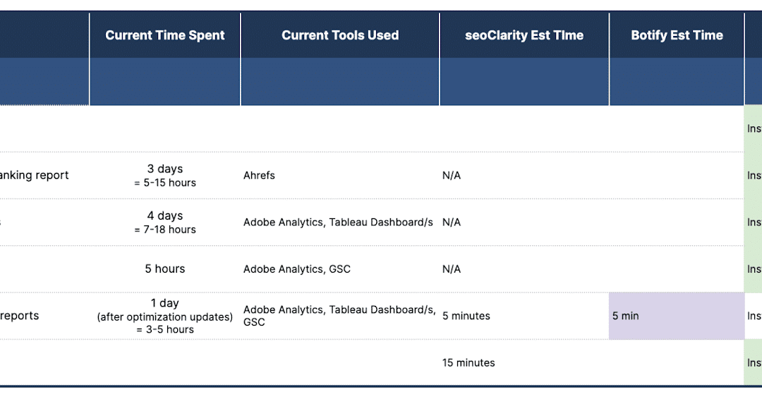 - Botify: Technical audits, weblog data, website analysis, and reporting.