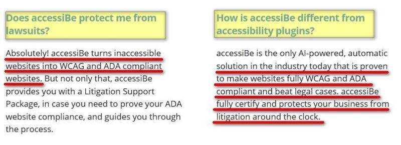 For example, look at this screenshot from the accessiBe site from February 2021, highlighted for readability: