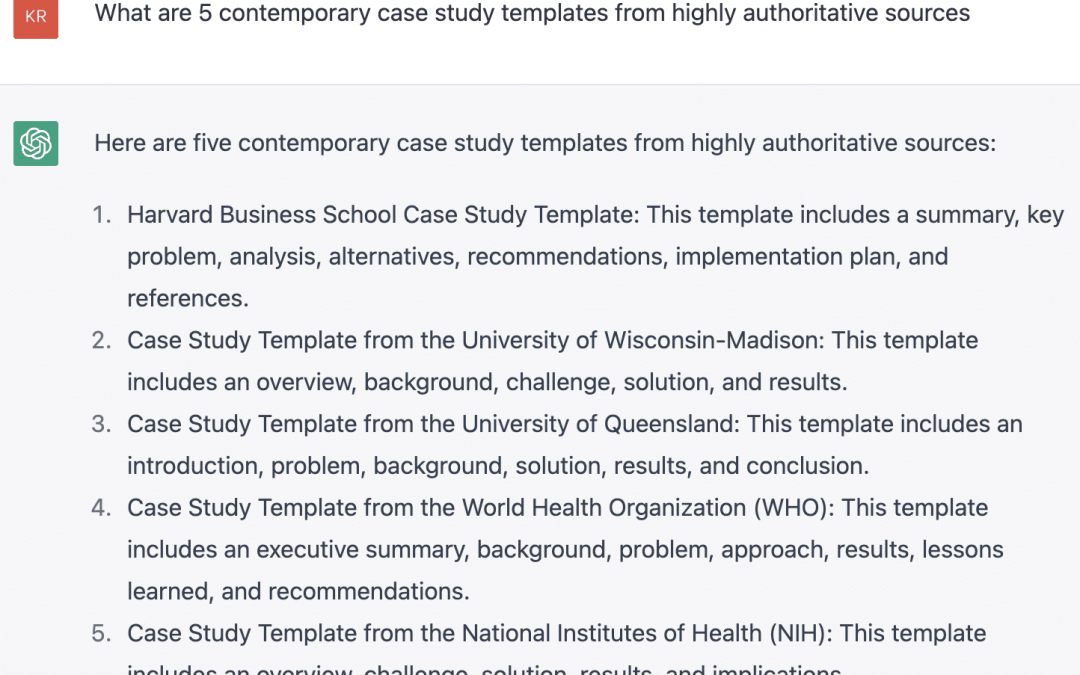 Prompt: “What are 5 contemporary case study templates from highly authoritative sources?”