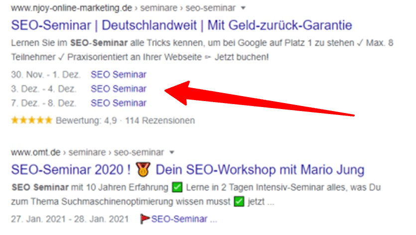 What event rich results looked like. Here is an old screenshot of what those event rich results looked like: