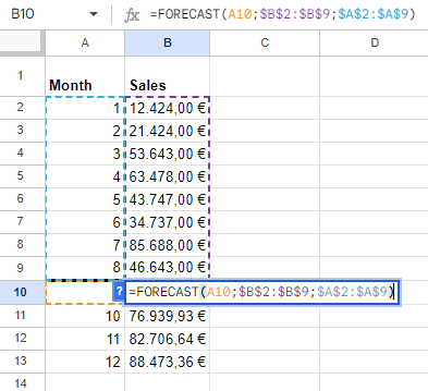 Google Sheets FORECAST function: The basics