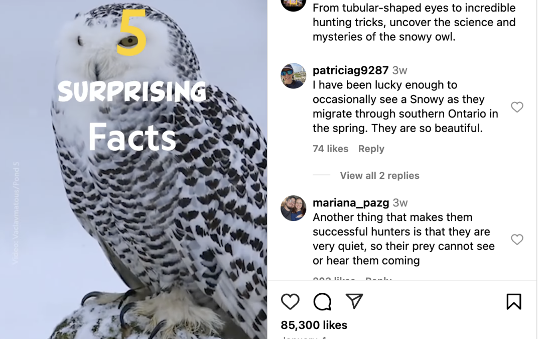 André uses her passion for community building to not just grow National Geographic’s followers, but also tell compelling stories that get their audience engaged. Whether it’s offering advice to maintain a healthy diet or sharing videos about the daily lives of snowy owls.