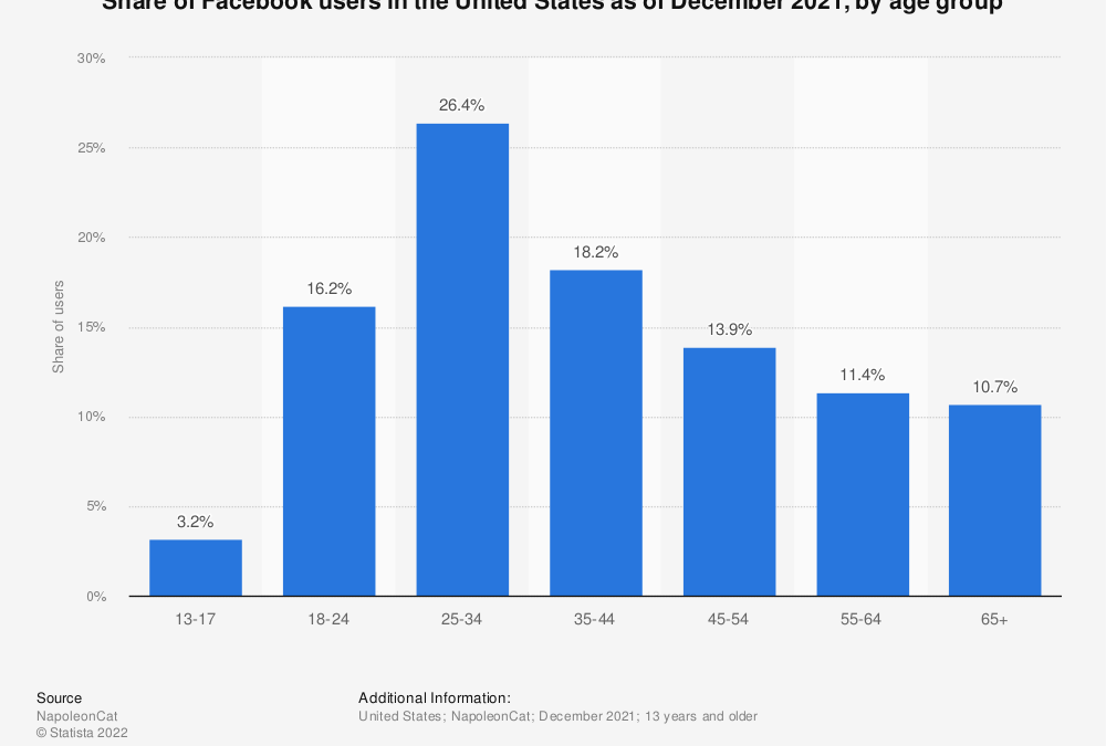 This is definitely the most concerning of all our Facebook statistics for advertisers and marketers. Rapid growth on TikTok and slowdowns on Instagram show that younger audiences are moving the needle for social networks.