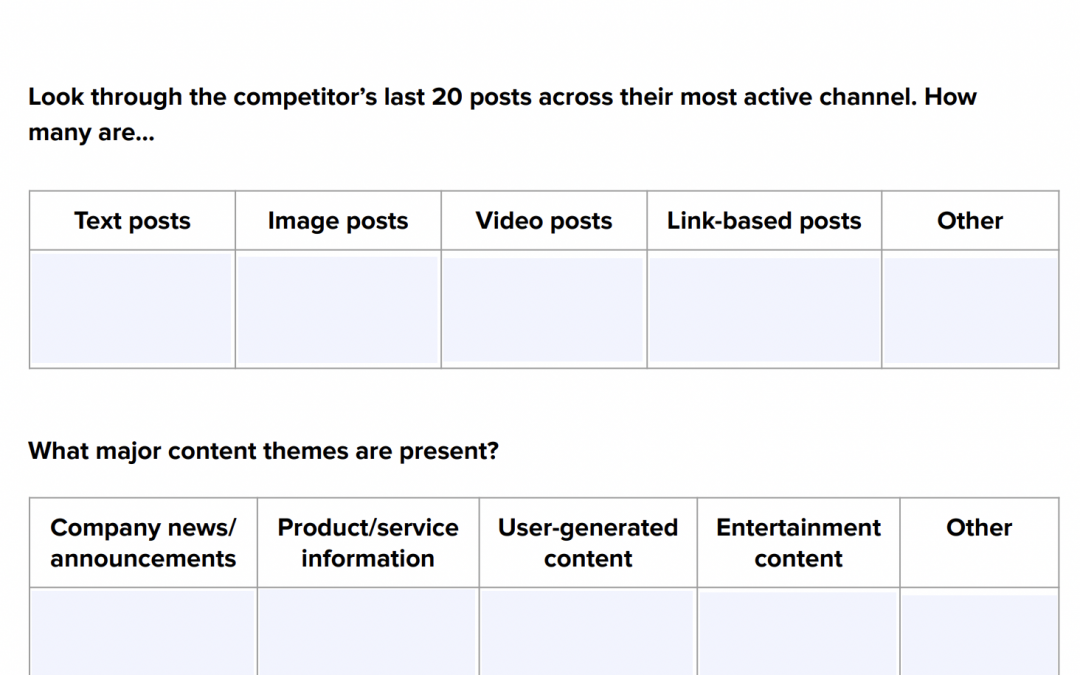 Keeping an eye on your competition helps you evaluate your own social channels and brand. In fact, 40% of brands use social data for competitive insight. Use our market research worksheet to quickly assess your competition, how you stack up and uncover data-driven insights with org-wide impact.