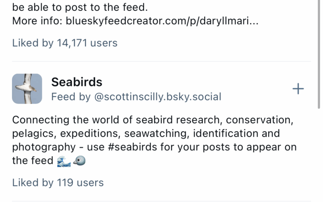 Here’s what the custom feed discovery feature looks like when you search for “birds.” If a brand wants to target an audience who enjoys parks, trails and nature, these Feeds are some of the places they hang out online.