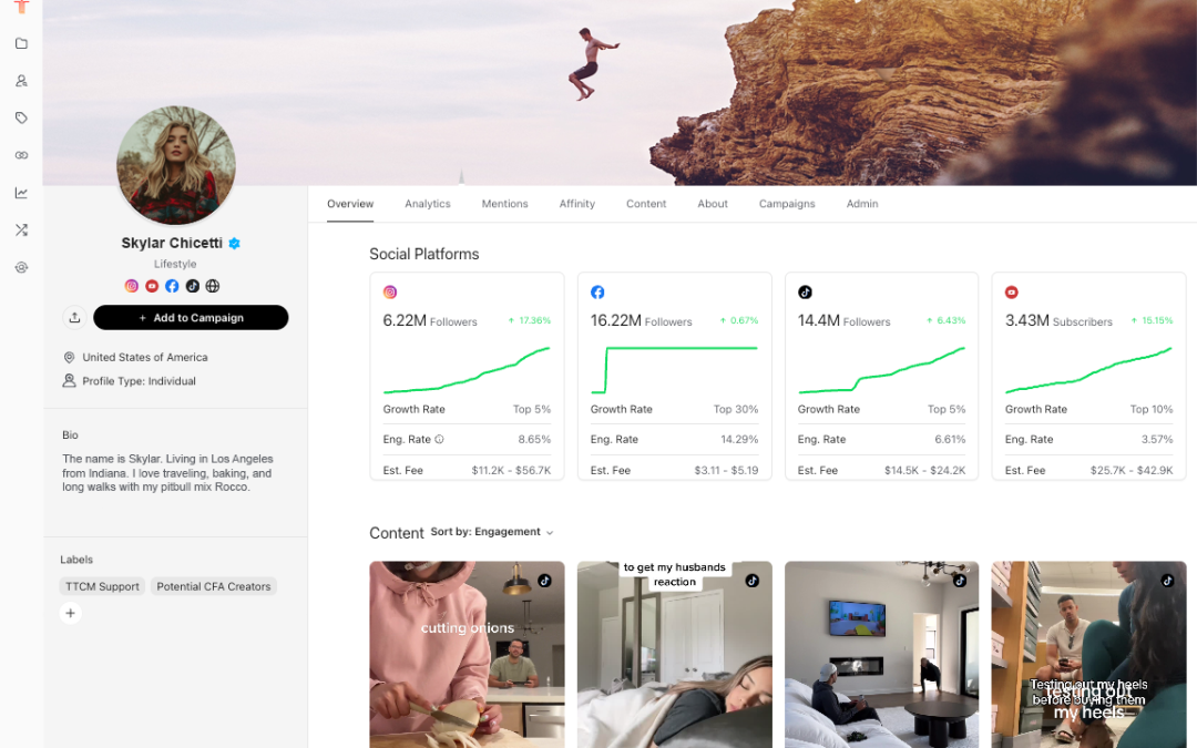 To truly find the perfect match for your brand, you need to comb through the landscape to find those who fit your brand best. To make it easier, use an influencer marketing tool. These tools help you pinpoint creators who not only align with your brand’s values and target demographic but also share a strong affinity with your brand ethos.